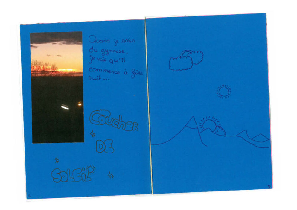 Mené avec la classe de 4eA du collège Maximilien Robespierre à Port-Saint-Louis-du-Rhône, ce projet interroge la notion de « chez-soi du dehors », entendue comme les lieux en dehors de l’habitation où les élèves se sentent bien. Chaque élève a créé un livre photo accompagné d’une couverture en cyanotype, réalisé des prises de vues numériques et argentiques moyen-format, ainsi que des vidéos pour documenter les ateliers, en explorant le rapport texte-image et la frontière entre réalité et fiction. L’ensemble de ces productions a été présenté sous forme d’une exposition-restitution à la bibliothèque du collège, pensée à travers un travail scénographique collectif.